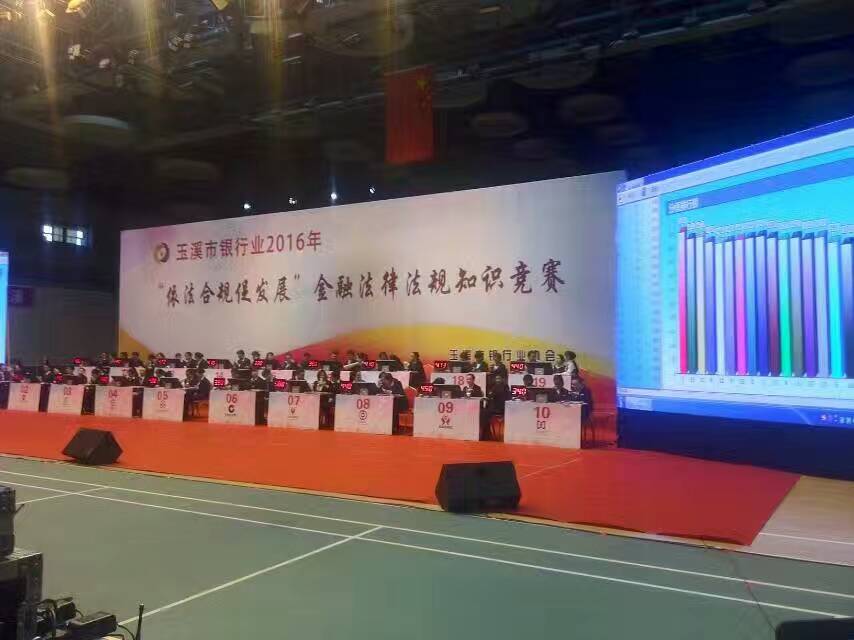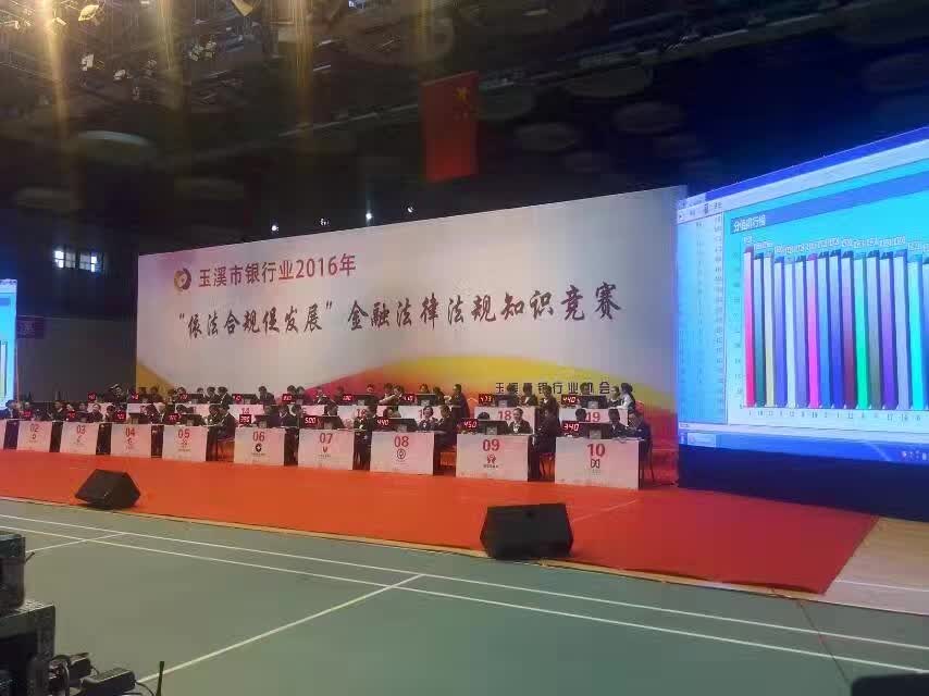 2016年,在玉溪市银行业“依法合规促发展”金融法律法规知识竞赛中,我司提供920LS型抢答器用于活动现场进行使用。