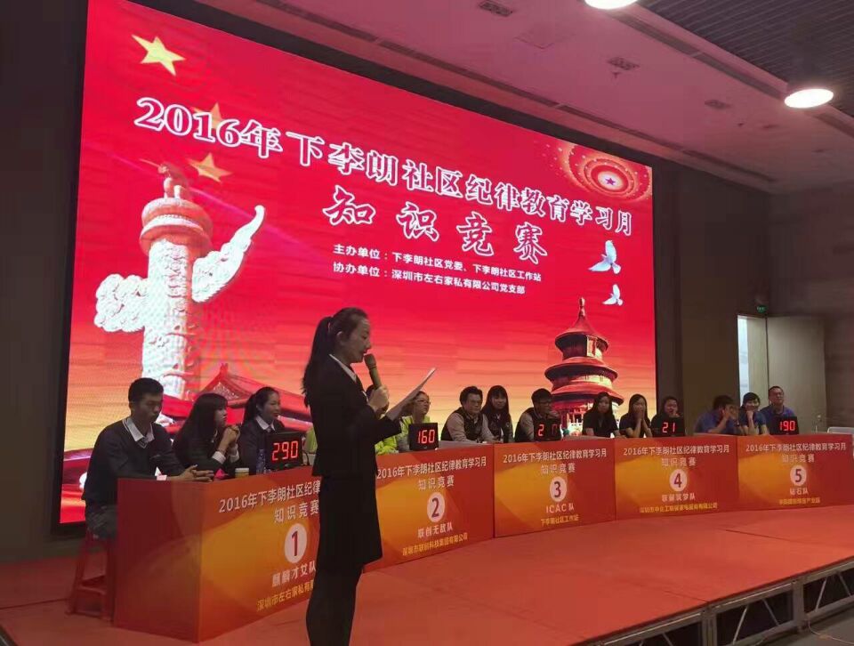 2016年,在下李郎社区纪律教育学习月知识竞赛中,我司提供920CS型抢答器用于活动现场进行使用。