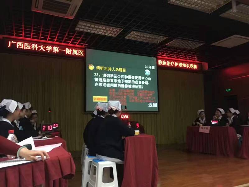 2017年,广西医科大学第一附属医院2017年“安全通路伴我行”--静脉治疗护理知识竞赛,使用步频920CS型电脑抢答器成功举办。