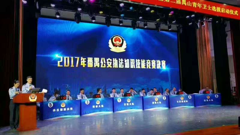 2017年番禺公安执法知识技能竞赛决赛暨第二届禺山青年卫士选拔启动仪式使用步频抢答器活动现场。