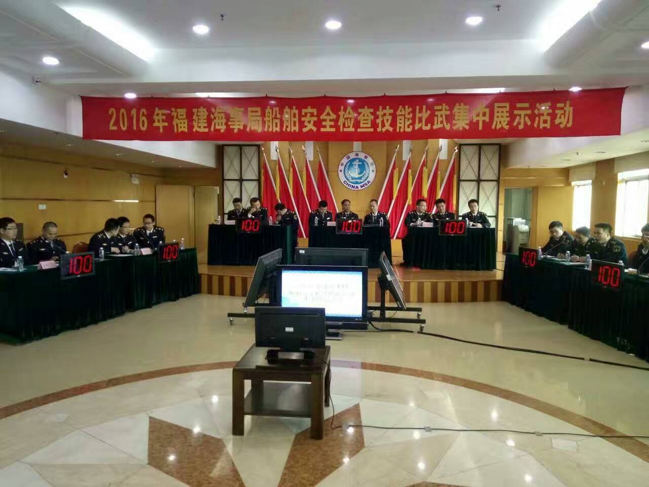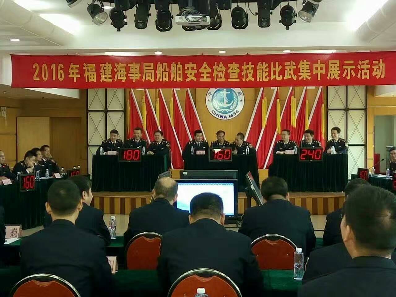 2016年,在福建海事局船舶安全检查技能比武集中展示活动中,我司提供950FS型抢答器用于活动现场进行使用。