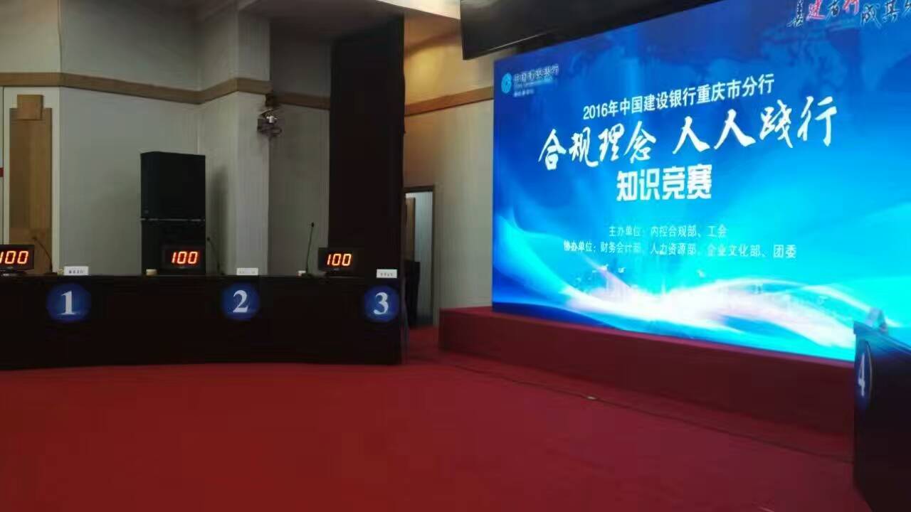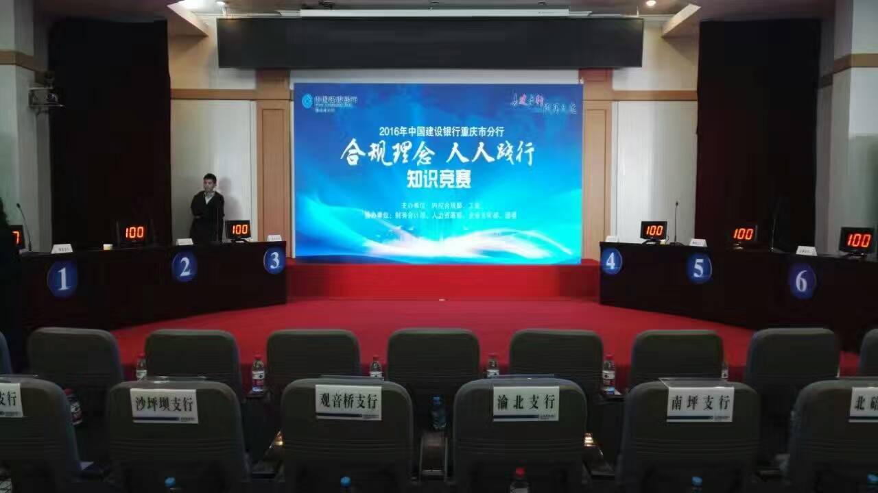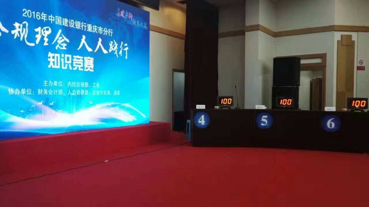 2016年,在中国建设银行重庆市是分行合规理念人人践行知识竞赛中,我司提供920CS型抢答器用于活动现场进行使用。